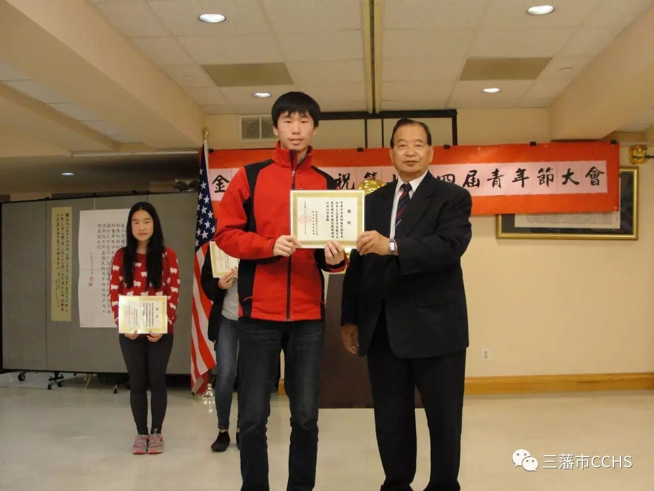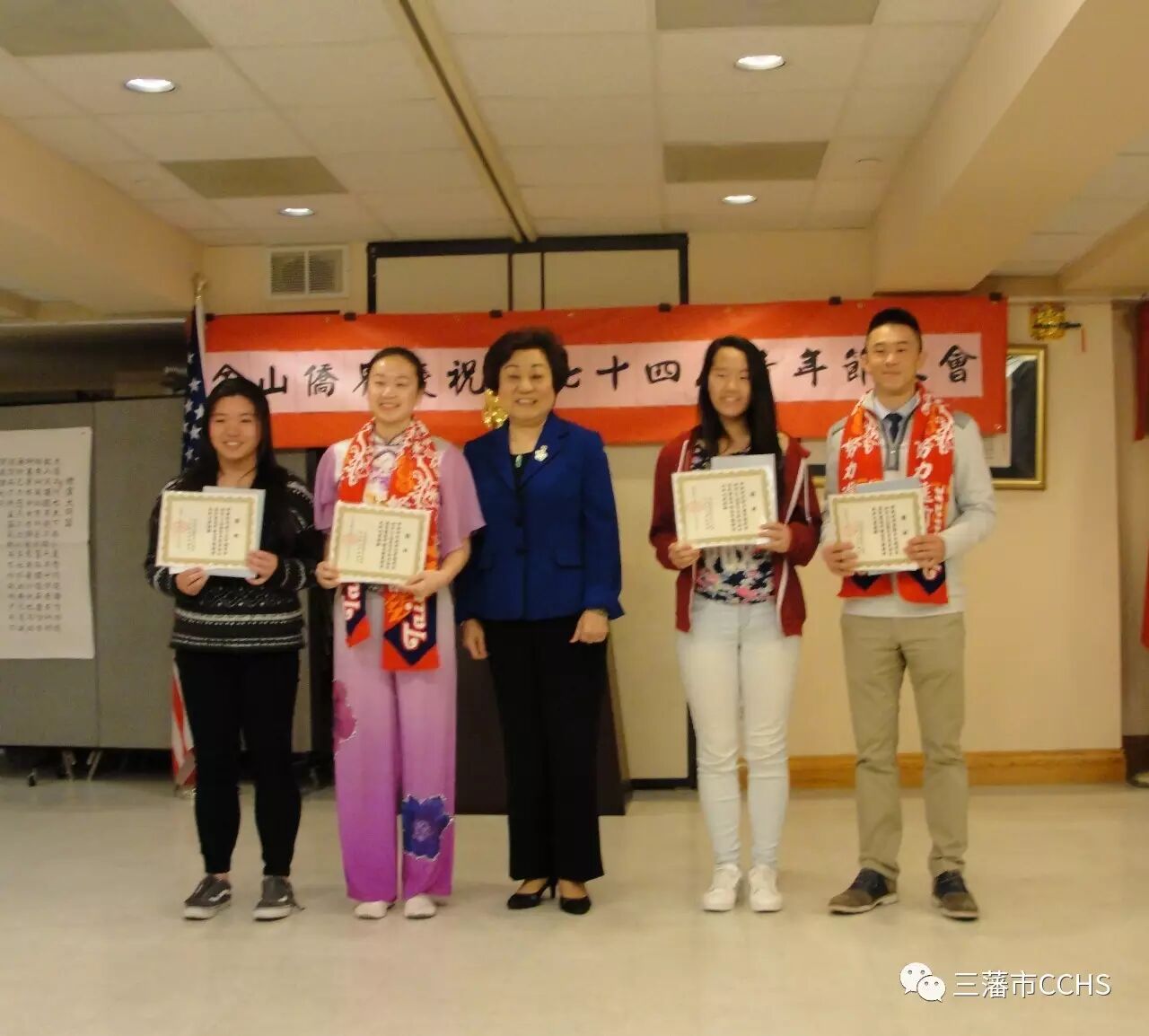 日上初三黄海珊同学(左二)荣获初中组作文比赛佳作奖。
