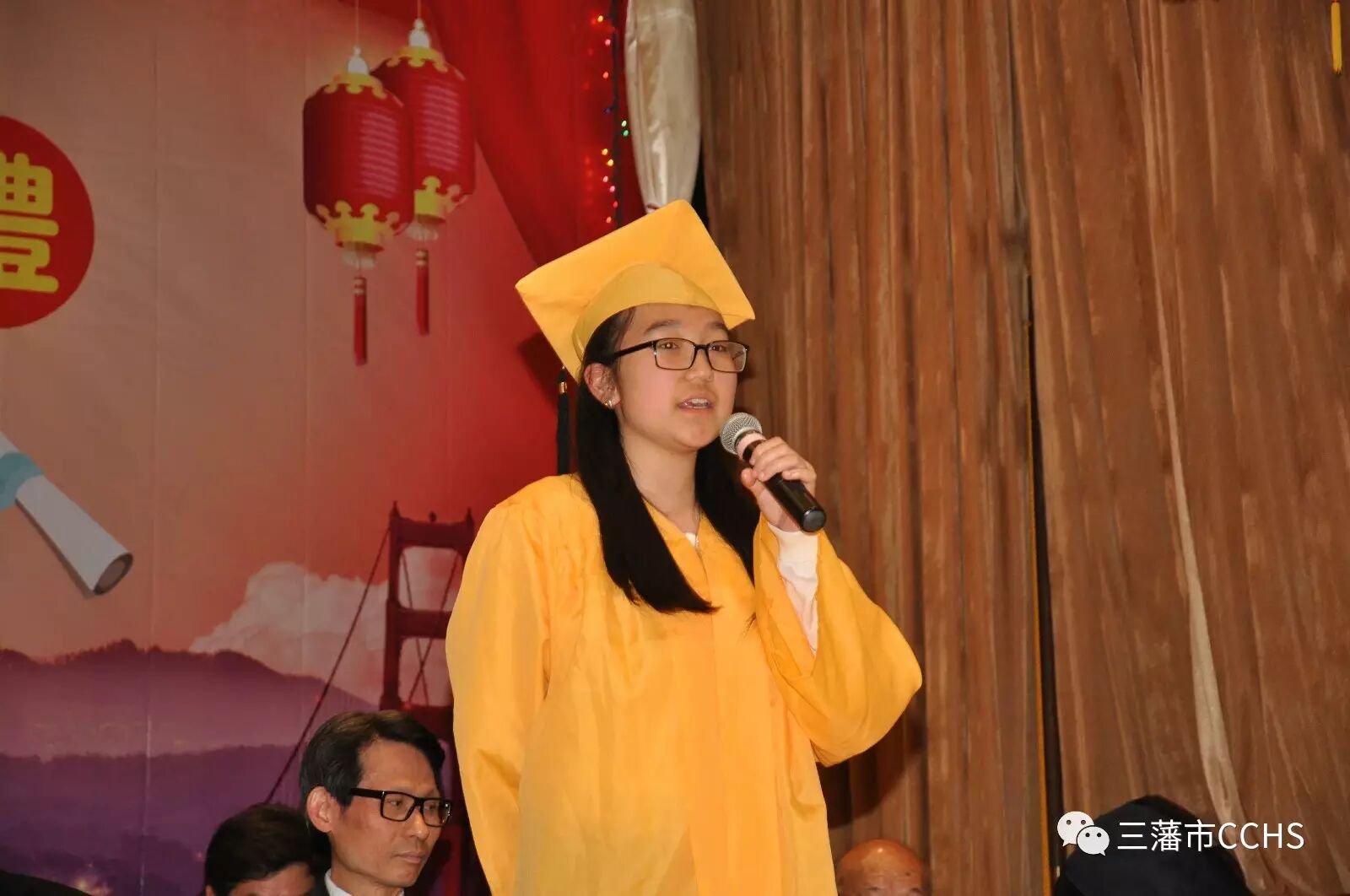 校董会黄中华副主席向小学毕业生颁发毕业证书高中毕业生代表欧纪莹致词,感谢老师们的谆谆教导,让同学们不仅掌握中文知识,还了解到博大精深中华文化。